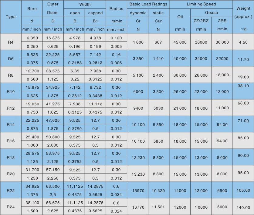 英制R系列深溝球軸承